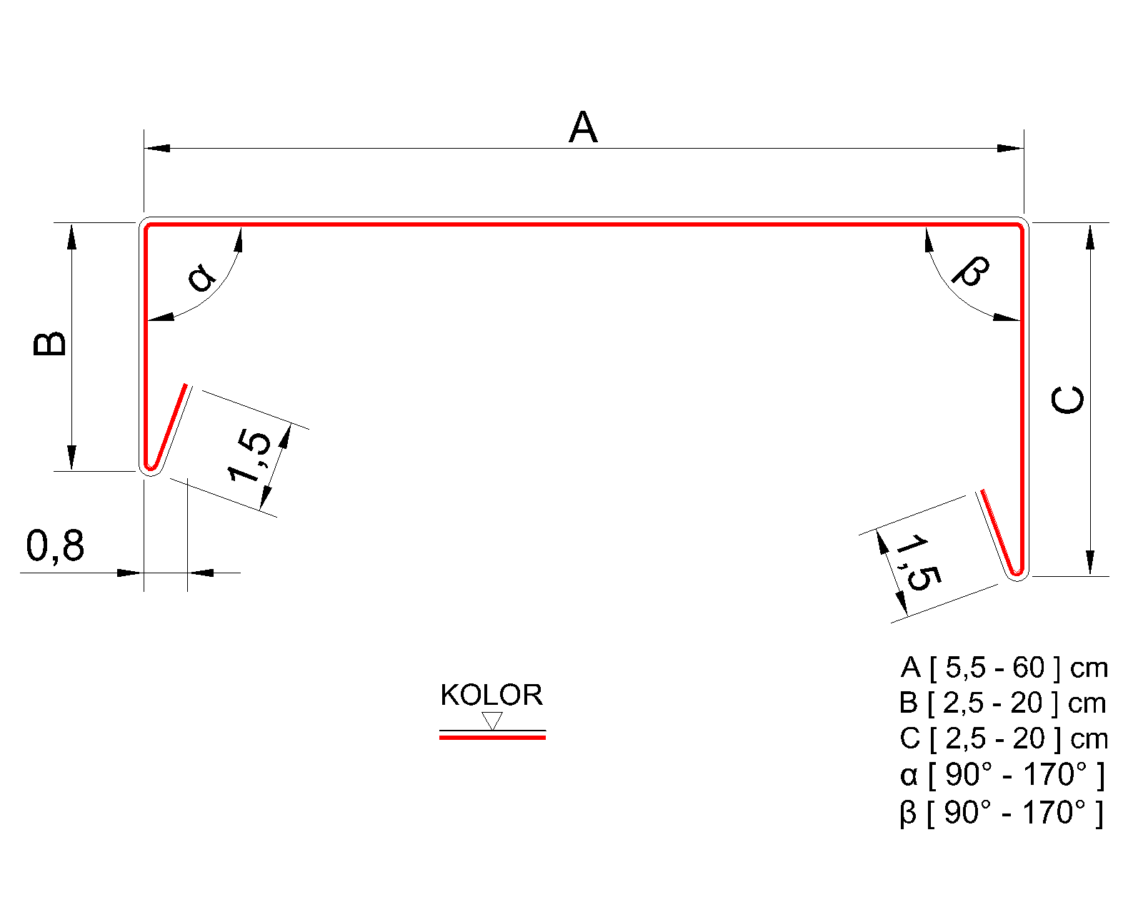 • Kąt β: 90°–170°