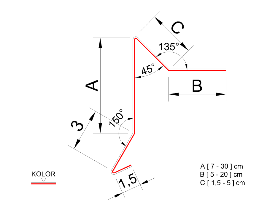 Wymiar C: min. 1,5 cm, max. 5 cm